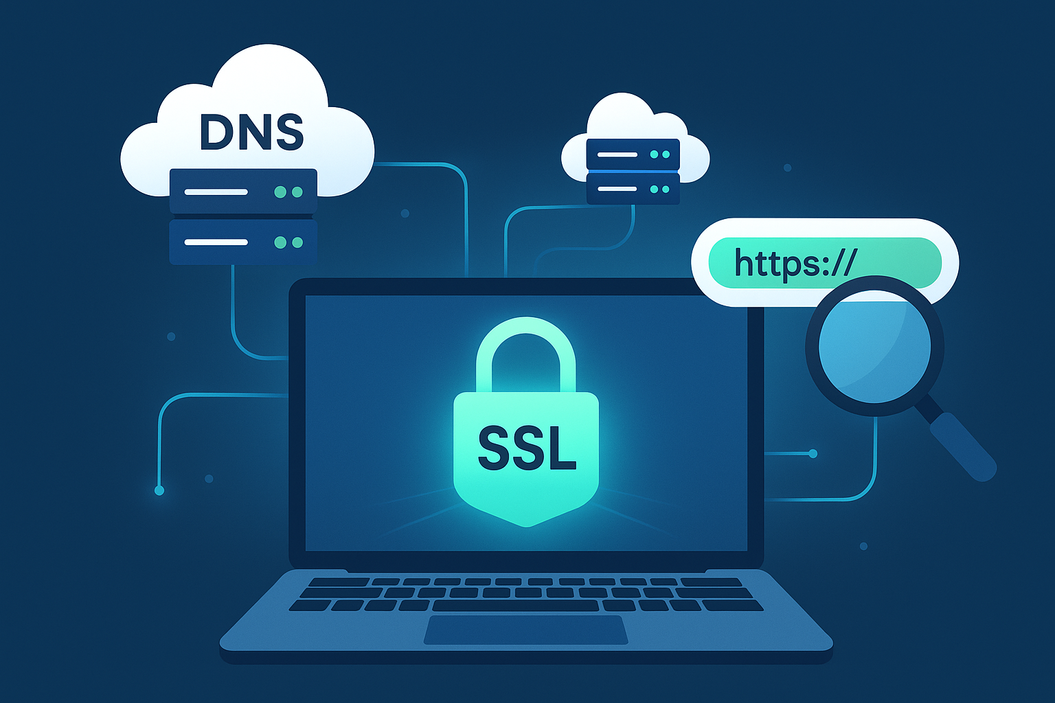 While SSL protects the connection between your users and your server, DNS (Domain Name System) ensures visitors reach the correct destination when they type your domain name.
